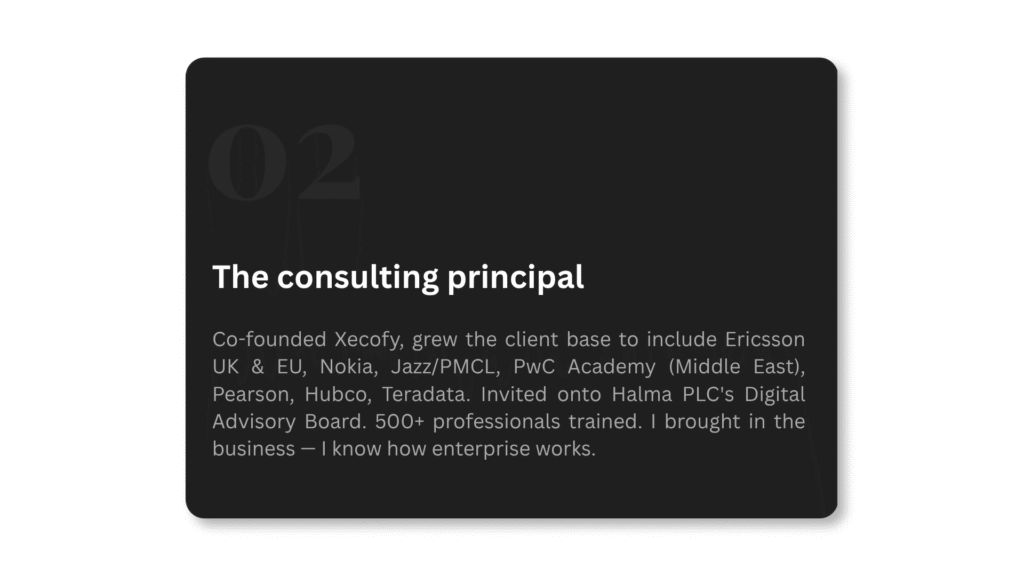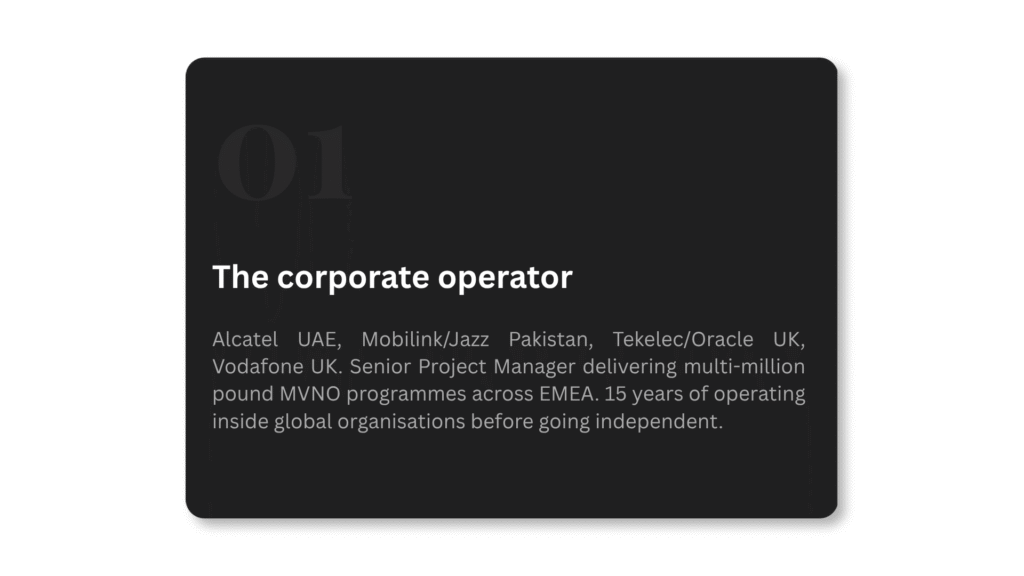 25 years across telecoms, enterprise consulting and real estate